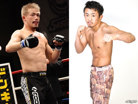 元環太平洋ライト級王者・土屋大喜(左)と対戦するCORO(右)