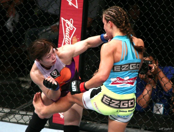 UFCでは現UFCバンタム級王者ミーシャ・テイト(右)とも対戦した