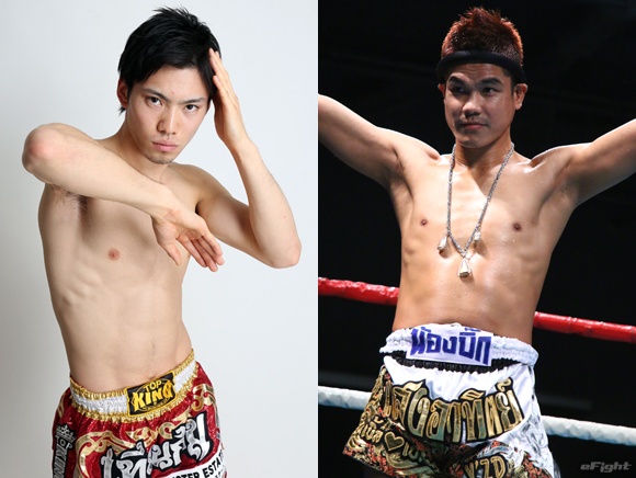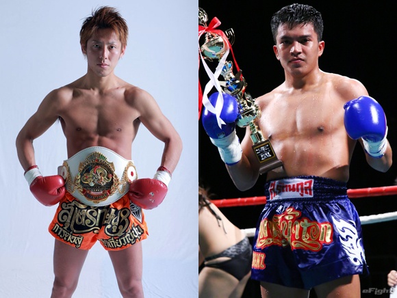 MA日本スーパーフェザー級王者・中向永昌(左)がペットナムエック・ワイズディー(右)と対戦