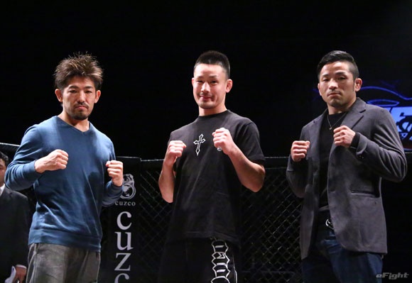 ストロー級初代王座決定GPに出場する(左から)阿部、小島、越智
