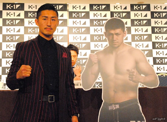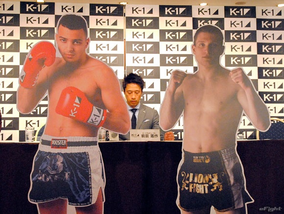 山崎(左)の1回戦の相手は初来日のレニタ(右・パネル)