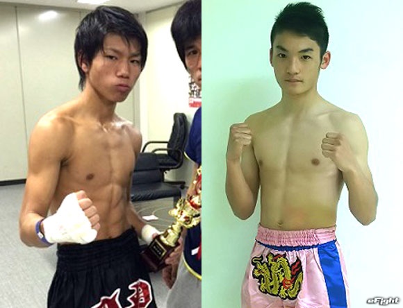 デビュー戦のリングに凱旋する立嶋挑己(左)とデビュー戦を迎える大物ルーキー大﨑(右)