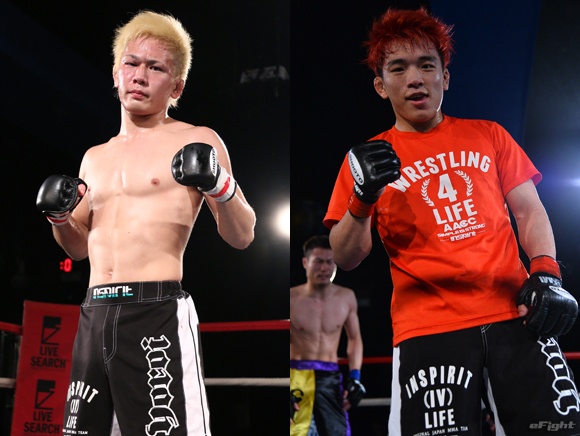 修斗世界フライ級チャンピオン決定戦で対戦する飛鳥拳(左)と澤田龍人(右)