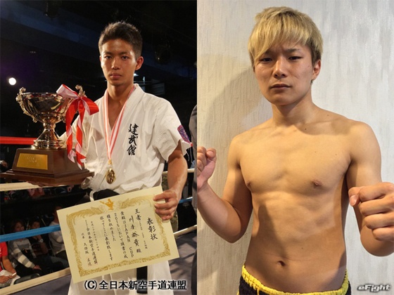 JAPAN CUP優勝の川手裕貴(左)とK-1チャレンジ55kg優勝の鈴木拓哉(右)が対戦する