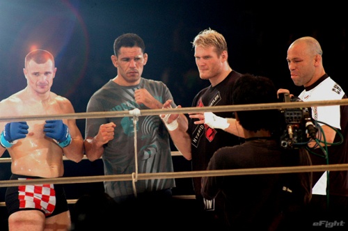 ミルコ・クロコップ(左)、ヴァンダレイ・シウバ(右)、ジョシュ・バーネット(右から2人目)らとPRIDE、UFCで活躍したノゲイラ(左から2人目)