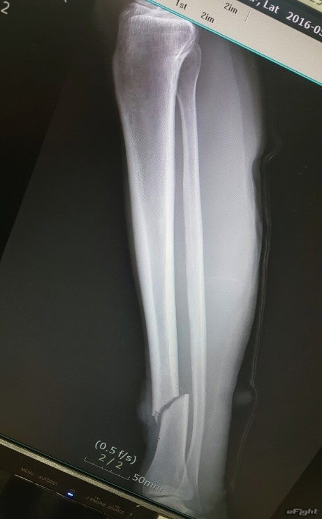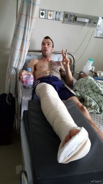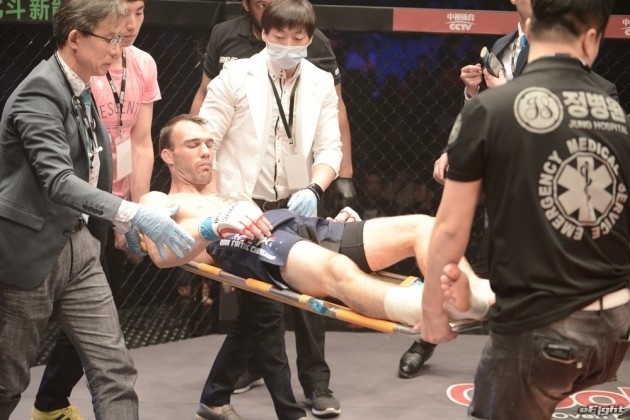 試合終了後すぐにストレッチャーで運ばれるジョージ・ループ