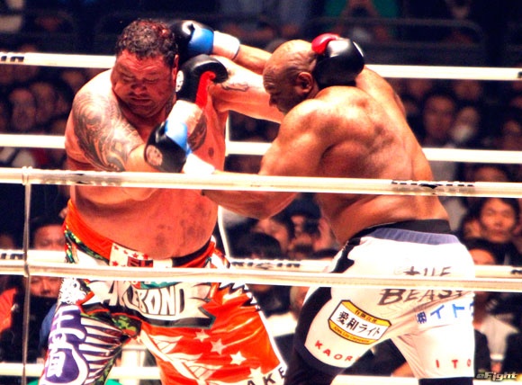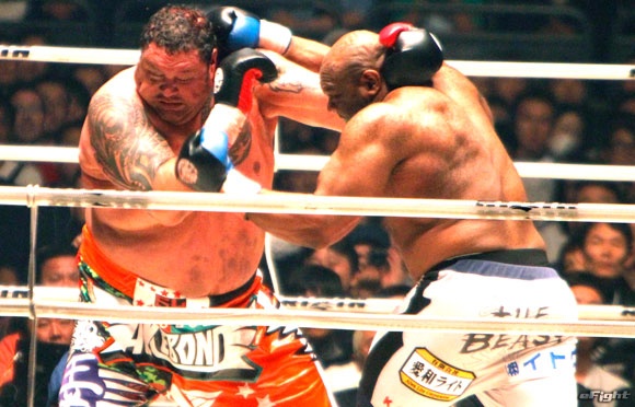 昨年の大みそかに曙(左)と対戦したサップ(右)