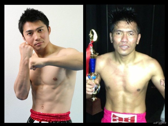 闘ふ神主櫻木崇浩(左)と元ルンピニースタジアム認定バンタム級3位センガーティプ・ウォー・ウィシアン(右)が対戦