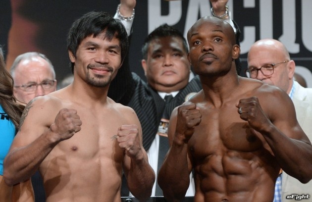 パッキャオ(左)のプロボクシング引退試合の前日計量で。右はブラッドリー/写真:NAOKI FUKUDA/WOWOW