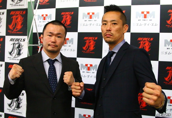 62.5kg契約の特別ルールで対戦する宮川博孝(左)と小磯哲史(右)