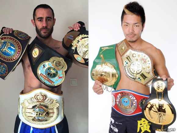 ISKA世界ライトミドル級タイトルマッチで対戦する王者ウィルフレッド・マーティン(左)と廣虎(右)