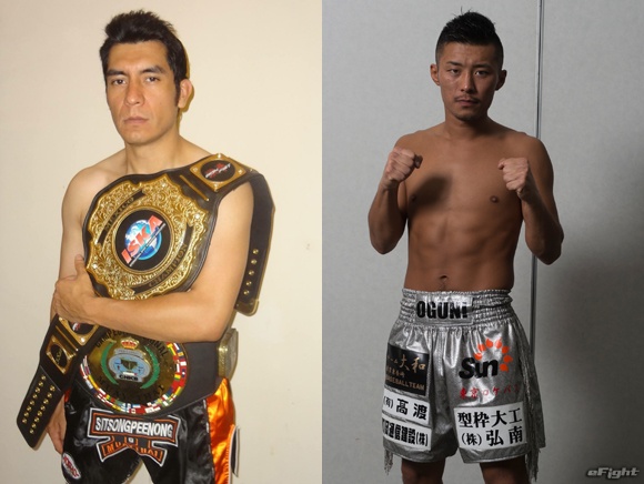 ISKAムエタイスーパライト級&CNKBメキシコスーパライト級2冠王者のマリオ・アマヤ(左)がNJKFウェルター級2位・山崎遼太(右)と対戦