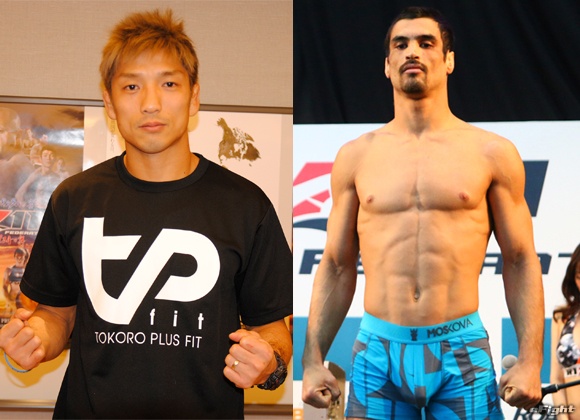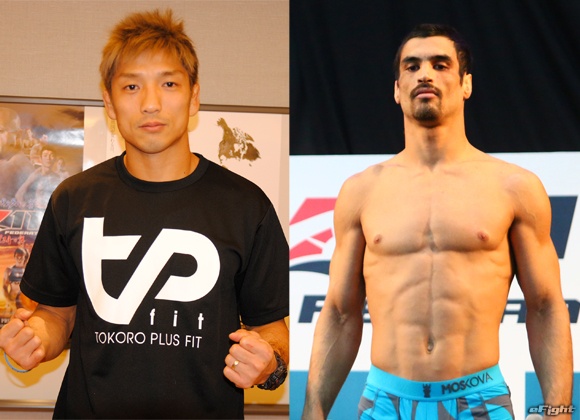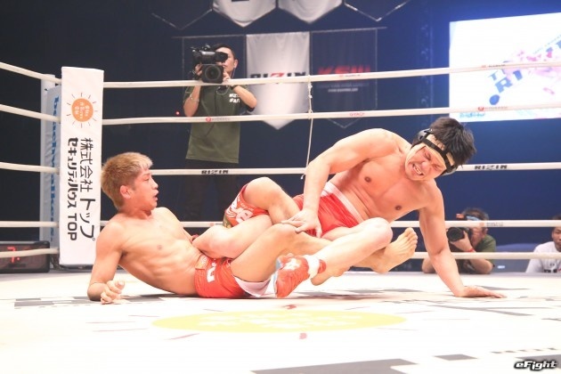 所(左)は4月の大会で田村潔司(右)と足関節を取り合う目まぐるしい攻防を見せた
