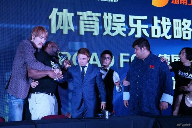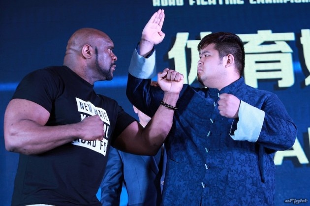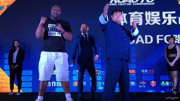 舌戦を繰り広げたボブ・サップ(左)とアオルコロ(右) PHOTO=ROAD FC (C)