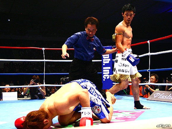 2010年のK-1トーナメントを全試合KOで制した大和。写真は決勝の久保優太戦