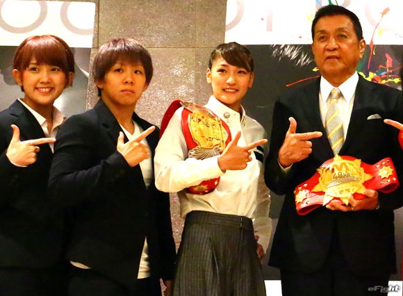(左から)MIO、村田、RENA、シーザー武志SB協会会長