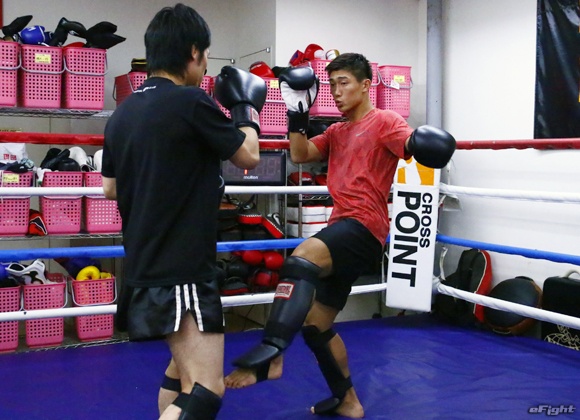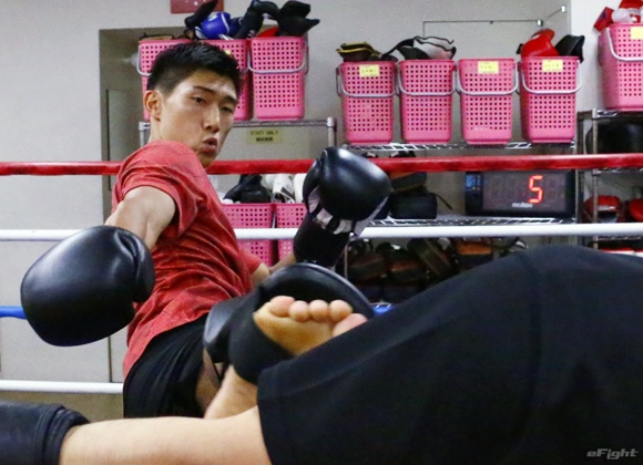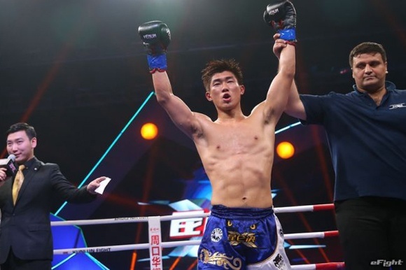 クンルン・ファイトの大会で勝ち名乗りを受ける宮越