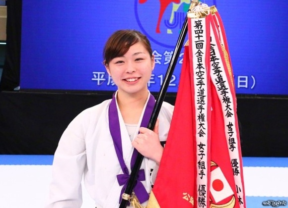 美女空手家の清水希容。昨年の全日本では気迫のこもった形で3連覇を達成。東京五輪で金メダルが期待される