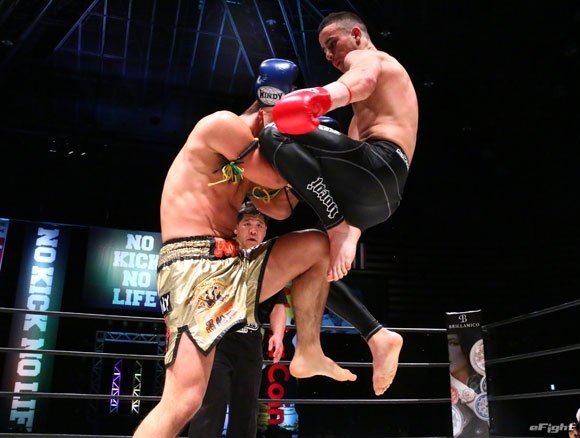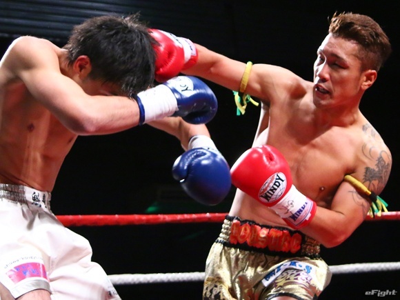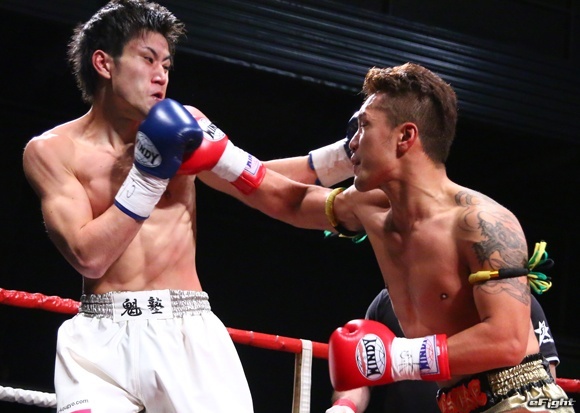 予告通り、水落(右)は右の強打でKO勝利を飾れるか