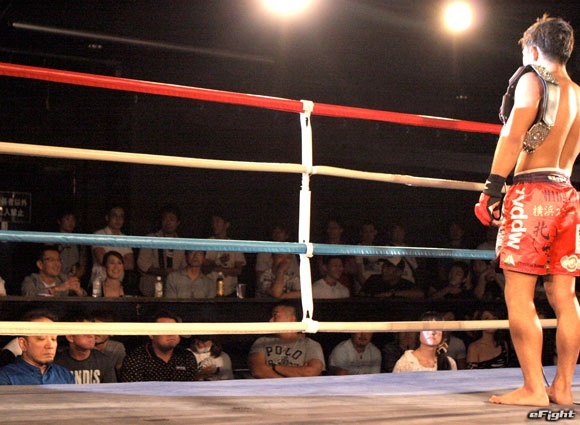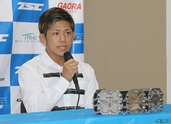 来場していた榊原信行・RIZIN実行委員長(左側)にRIZIN出場を直訴する伊藤