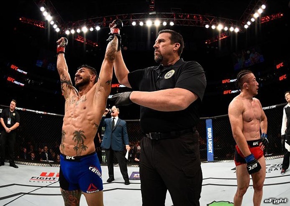 1Rと3Rにテイクダウンを奪った川尻。映像を見返したが「俺は負けてない」と主張した