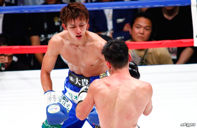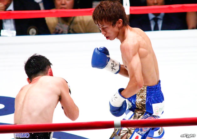 右ストレートをヒットさせた後、手首を中心に腕をクルクルと回した田口