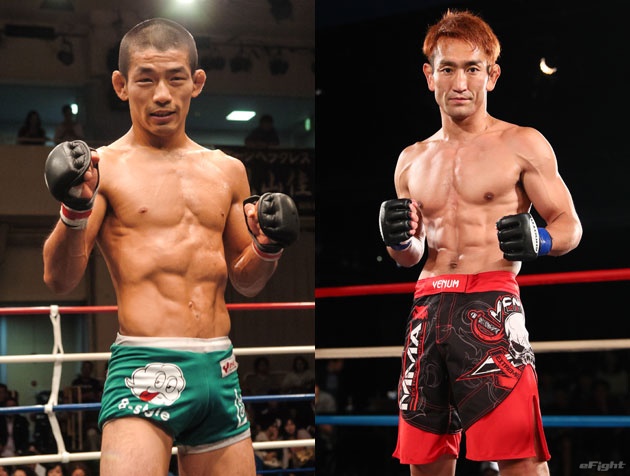 初代パンクラス・バンタム級王者の井上(左)が約3年ぶりの復帰戦。相手は前回KO勝ちの六本木(右)