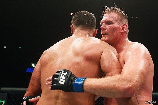 顔面を血に染めながら拳を振るうアルロフスキー(右)