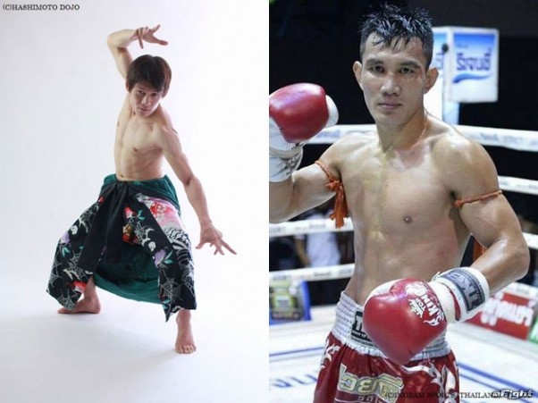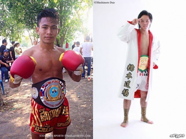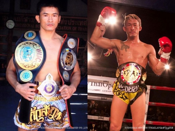 昨年の同大会でWPMF世界スーパーフェザー級王座に就いた町田(左)が元ラジャダムナンスタジアム認定フライ級王者マープラローンを相手に初防衛戦