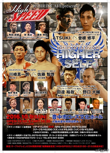 10・9『HIGHSPEED2016 ~higher self~』大会ポスター