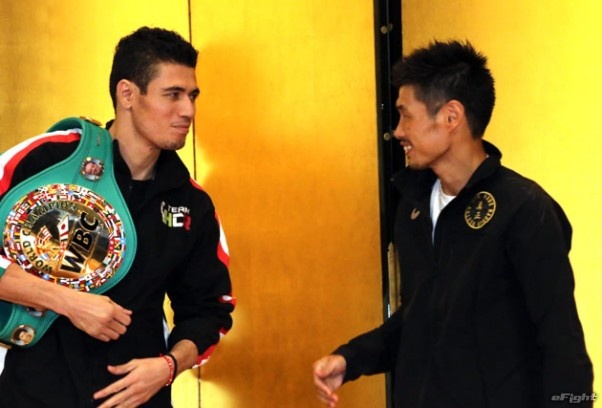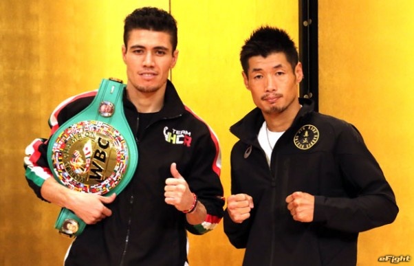三階級制覇に挑む長谷川(右)。王者ルイス(左)は2012年12月に亀田興毅とも対戦している