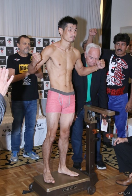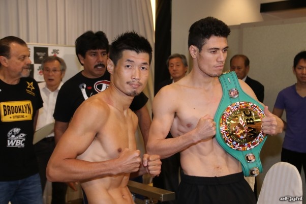 WBC世界スーパーバンタム級王者ウーゴ・ルイス(右)に挑む長谷川穂積(左)
