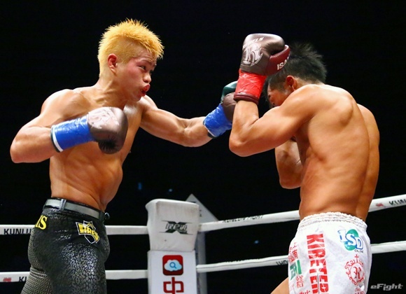 8月のKUNLUN FIGHT 49×REBELS.45で健太(右)とドローに終わった鈴木(左)