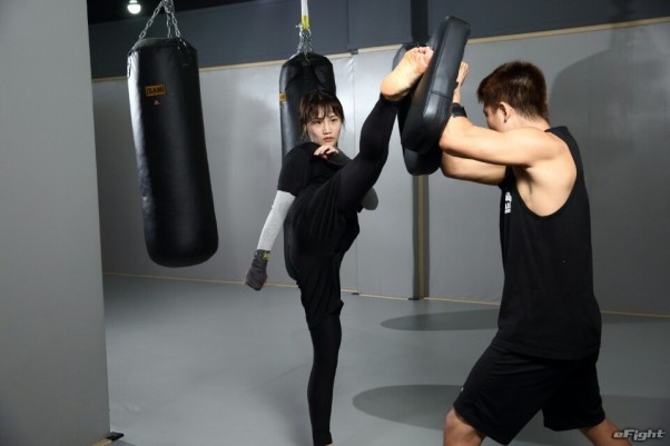 長い足からテコンドー仕込みの蹴りを繰り出すへイン