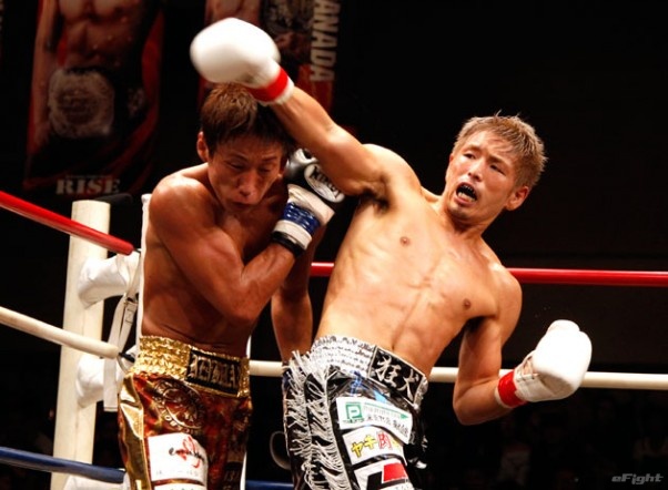 多彩な技でKOを狙いに行くスタイルの森本(右)