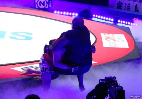 かねてから押し出しされた選手が相手選手をつかんで一緒に落ち、同体に持ち込むことが問題視されていた
