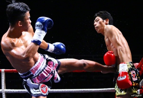 8月大会では元ラジャダムナンスタジアム認定ライトフライ級王者ヨーブアデン・ソーシリラック(左)と対戦するも3RにTKO負けを喫した瀧澤(右)