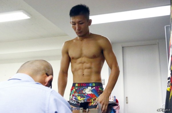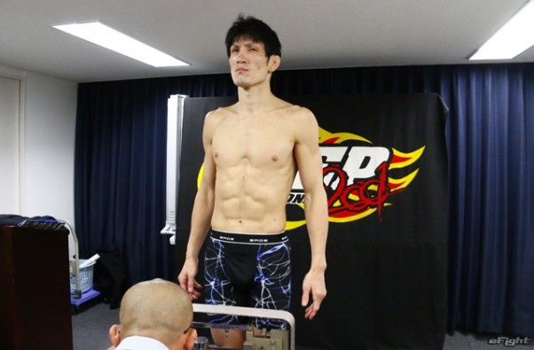 真剣な面持ちで計量に臨んだDJ。昨年末RIZIN以来、約10ヶ月ぶりの試合に臨む