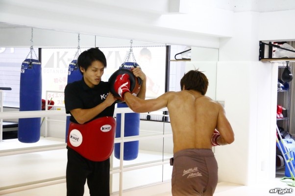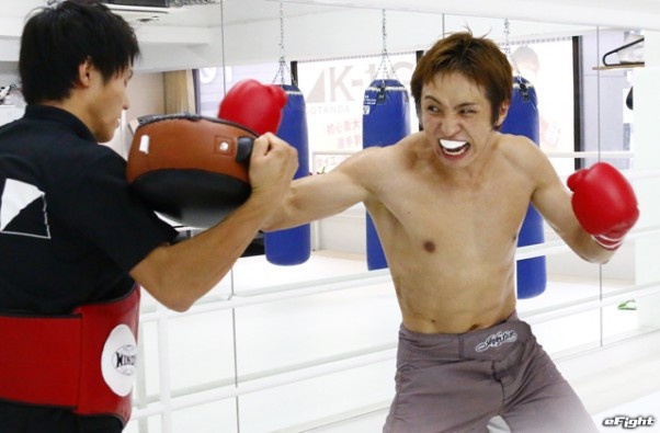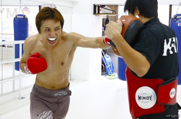 渾身の左ストレートを叩き込む久保優太