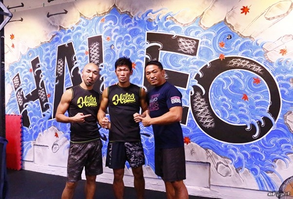 PRIDEで活躍した三崎和雄(右)が見守る中、ランニングを行う牧平(左)