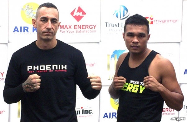 ラウェイ80kg級世界王者にして43勝1敗11分の戦績を持つミン(右)。メインでムエタイファイターのアデム(左)と対戦する