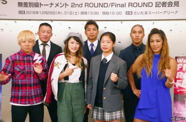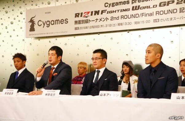 RIZINの榊原信行実行委員長(前列中央・右)と高田延彦統括本部長(前列中央・左)