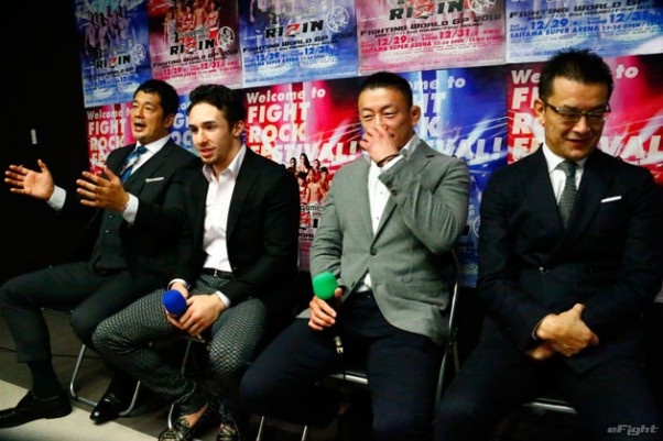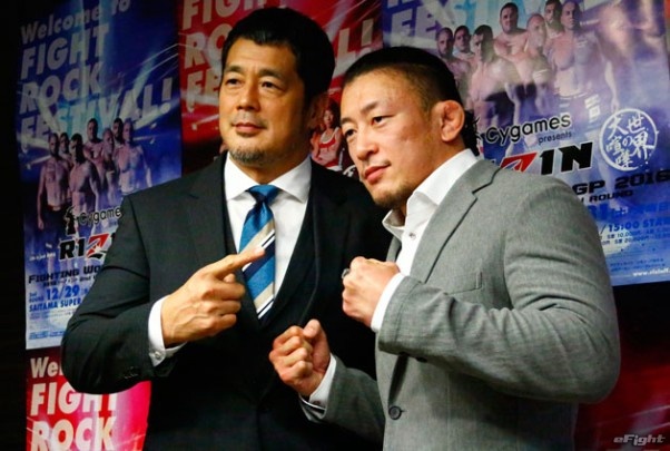 女子格闘技に負けるな!と川尻(右)にエールを送った高田延彦・統括本部長
