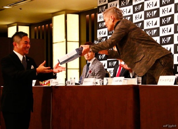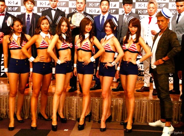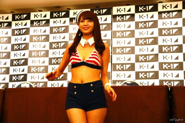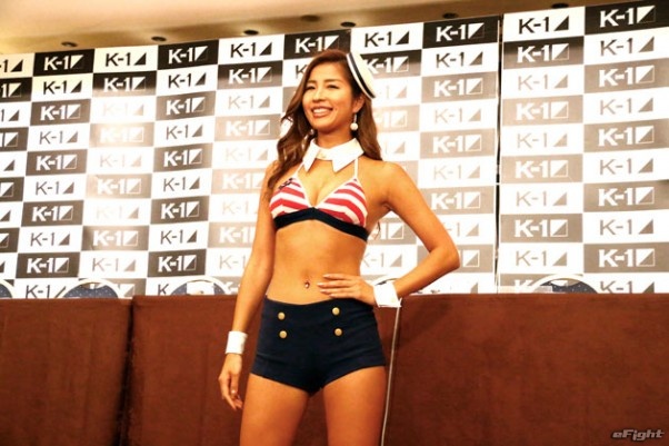 わざわざ自作してきたというK-1ガールズと同じ帽子を被ってポーズをとる城戸