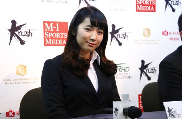 リング上で元気一杯のラウンドガールパフォーマンスを披露する才木