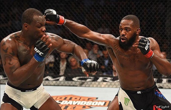 今年4月、王者剥奪&無期限出場停止の処分を経て、約1年3カ月ぶりのリングで勝利したジョーンズ(右)だったが… PHOTO=Zuffa, LLC (c) / GettyImages (c)