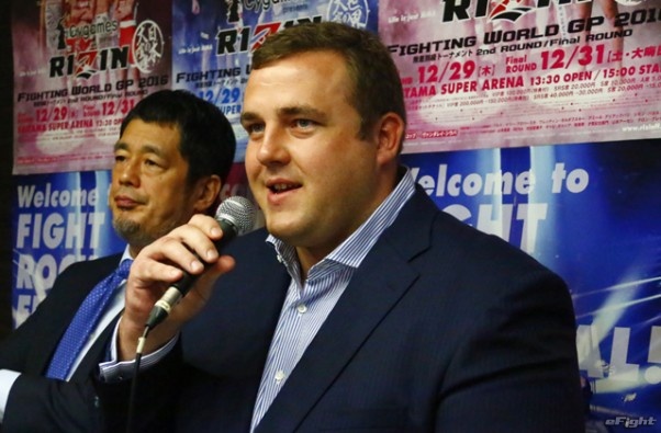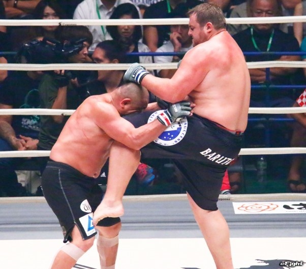 無差別級トーナメントへの出場が決まった高阪剛(右)。準決勝進出を懸けてバルト(左)と拳を交える