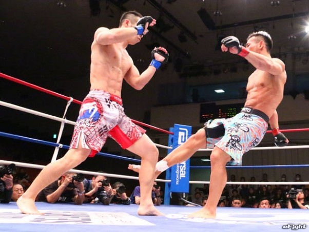 高橋のふくらはぎを蹴るローキック