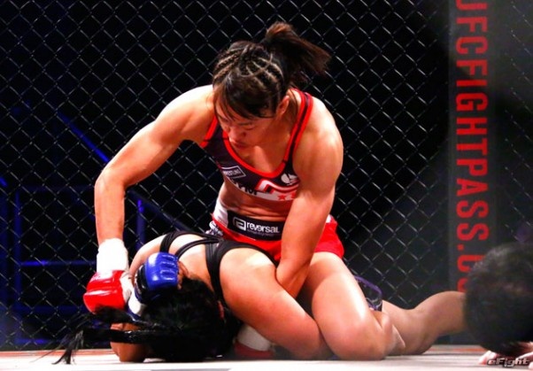 マウントポジションからのパウンドでシャーリーン・ワットにTKO勝ちした中井りん