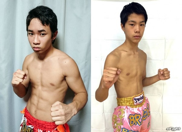 ジュニアキック史上初の全階級完全制覇を成し遂げた柊斗(左)がプロデビュー戦でREITO(右)と対戦する